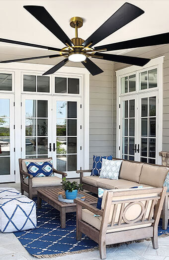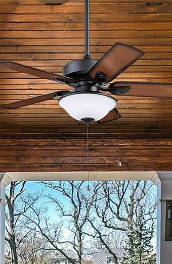 Installation of weather-rated ceiling fans for alfresco areas, patios, or balconies. Suitable for coastal environments and high-moisture areas.